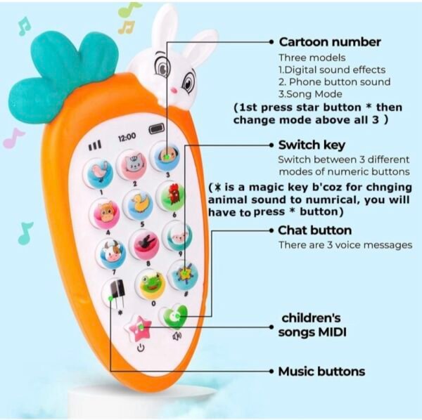 ➡️Rabbit/Carrot Intelligence Mobile Phone Toy for Babies -Musical Toy Cell Phone with Teether, Light and Music for Babies .