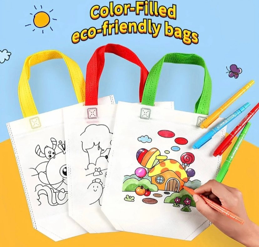 * This non woven Bag will make your gift look Good!!!This DIY bag has pre defined prints, for coloring activity. Can be colored using sketches.